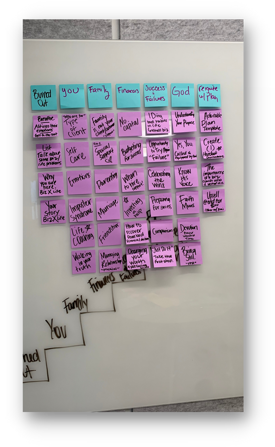 My client came to me for website design, but I knew clarity was key to making a successful site. Here we mapped out who she is and who she serves.