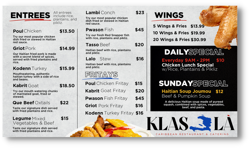 This local restaurant was in need of a brand update! After a few on-site visits, took notes and was able to consult the owner on what was needed to visually update all of his marketing needs.